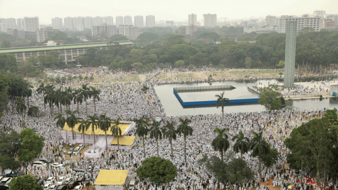 এর আগে ভোর থেকেই শাহবাগ, দোয়েল চত্বর ও নীলক্ষেতে থেকে মিছিল নিয়ে হেফাজতের নেতাকর্মীরা সোহরাওয়ার্দী উদ্যানে প্রবেশ করেন। ঢাকা, চট্টগ্রাম, বরিশাল এবং রংপুর ছাড়াও দেশের বিভিন্ন জেলা-উপজেলা থেকে নেতা-কর্মীরা মহাসমাবেশে যোগ দিয়েছেন।