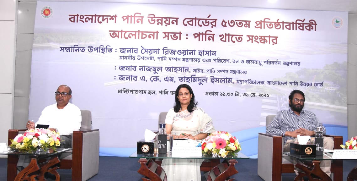 উপদেষ্টা আজ (শনিবার) ঢাকায় গ্রীন রোডস্থ পানি ভবনের মাল্টিপারপাস হলে বাংলাদেশ পানি উন্নয়ন বোর্ডের ৫৩ তম প্রতিষ্ঠাবার্ষিকী উপলক্ষ্যে 'পানি খাতে সংস্কার' শীর্ষক আলোচনা সভায় বক্তৃতায় এসব কথা বলেন। তিনি বলেন, এই বর্ষার সময়ে পানি উন্নয়ন বোর্ডের ০৯ টি জোনের প্রধান প্রকৌশলী-সহ ঊদ্ধতন প্রকৌশলীদের নিয়মিত মাঠে যেতে হবে। তিনি জোনের প্রধান প্রকৌশলীদের মাঠ পর্যায়ে মনিটরিং কার্যক্রম জোরদার করার নির্দেশ দেন যাতে করে মানুষের ক্ষয়ক্ষতি কমিয়ে আনতে তাৎক্ষণিক সাড়া দেয়া যায়।