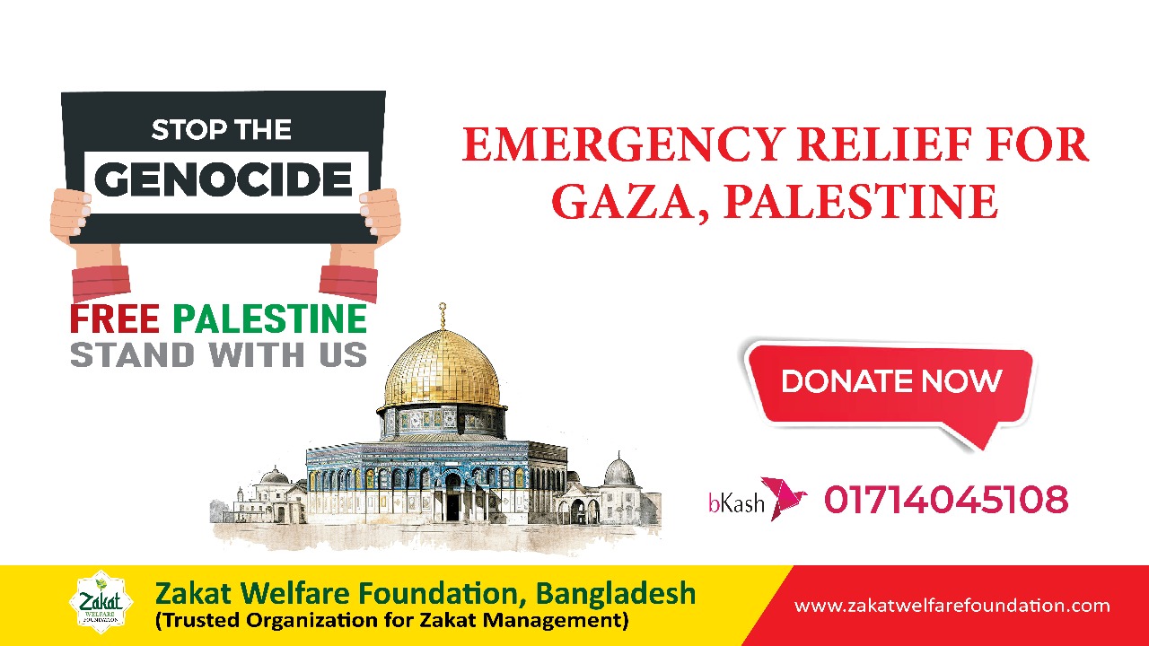 ইসরাইলের বোমারু বিমান অবরুদ্ধ গাজার বিভিন্ন স্থাপনা লক্ষ্য করে বিরতিহীন বোমাবর্ষণ চালিয়ে যাচ্ছে। গাজায় ২৩ লাখ মানুষের খাবার, পানি, বিদ্যুৎসহ নিত্যপণ্যের সরবরাহ বন্ধ থাকায় সেখানে দেখা দিয়েছে ভয়াবহ মানবিক বিপর্যয়। বাংলাদেশ বরাবরই ইসরায়েলি আগ্রাসনের বিরুদ্ধে প্রতিবাদী ভূমিকা পালন করে আসছে। সর্বশেষ নৃশংসতায় বাংলাদেশে ব্যাপকভাবে ক্ষোভের বহিঃপ্রকাশ ঘটেছে। মজলুম গাজাবাসীর প্রতি সহানুভূতি জানাতে বাংলাদেশের সাধারণ মানুষ, ধর্মপ্রাণ মুসলমান, মানবাধিকার সংগঠন, রাজনৈতিক ও সামাজিক সংগঠনগুলোও মাঠে নেমেছে। এই সহানুভূতি শুধু ধর্মীয় নয়; মানবতার প্রতি দায়বদ্ধতার কারণেও।